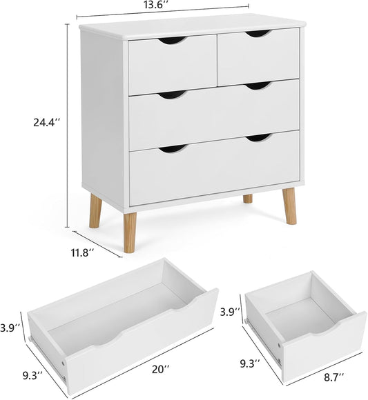 Slevoo 4 Drawers Dresser for Bedroom, 24.4''H White Drawer Dresser Nightstand with Solid Wood Legs