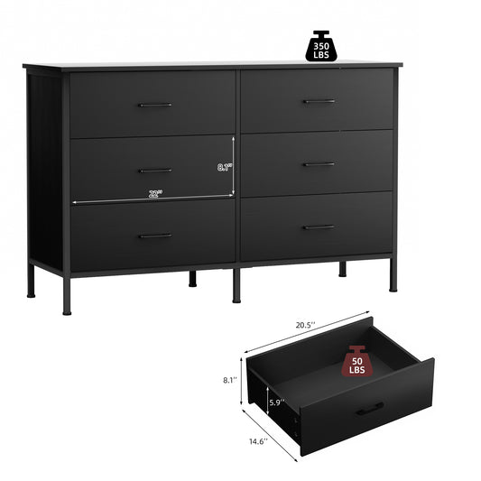Slevoo 47.3" W Chest of Dressers 6 Drawers for Bedroom, Living Room, Hallway, Steel Wood Frame, Black