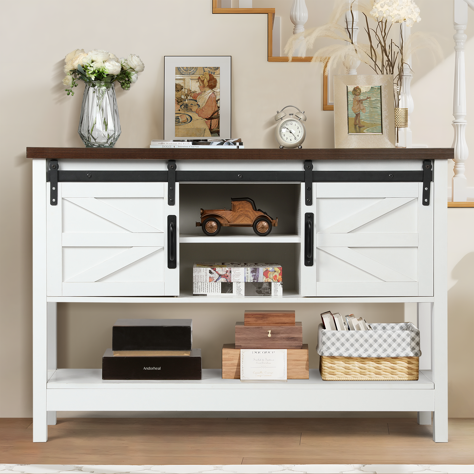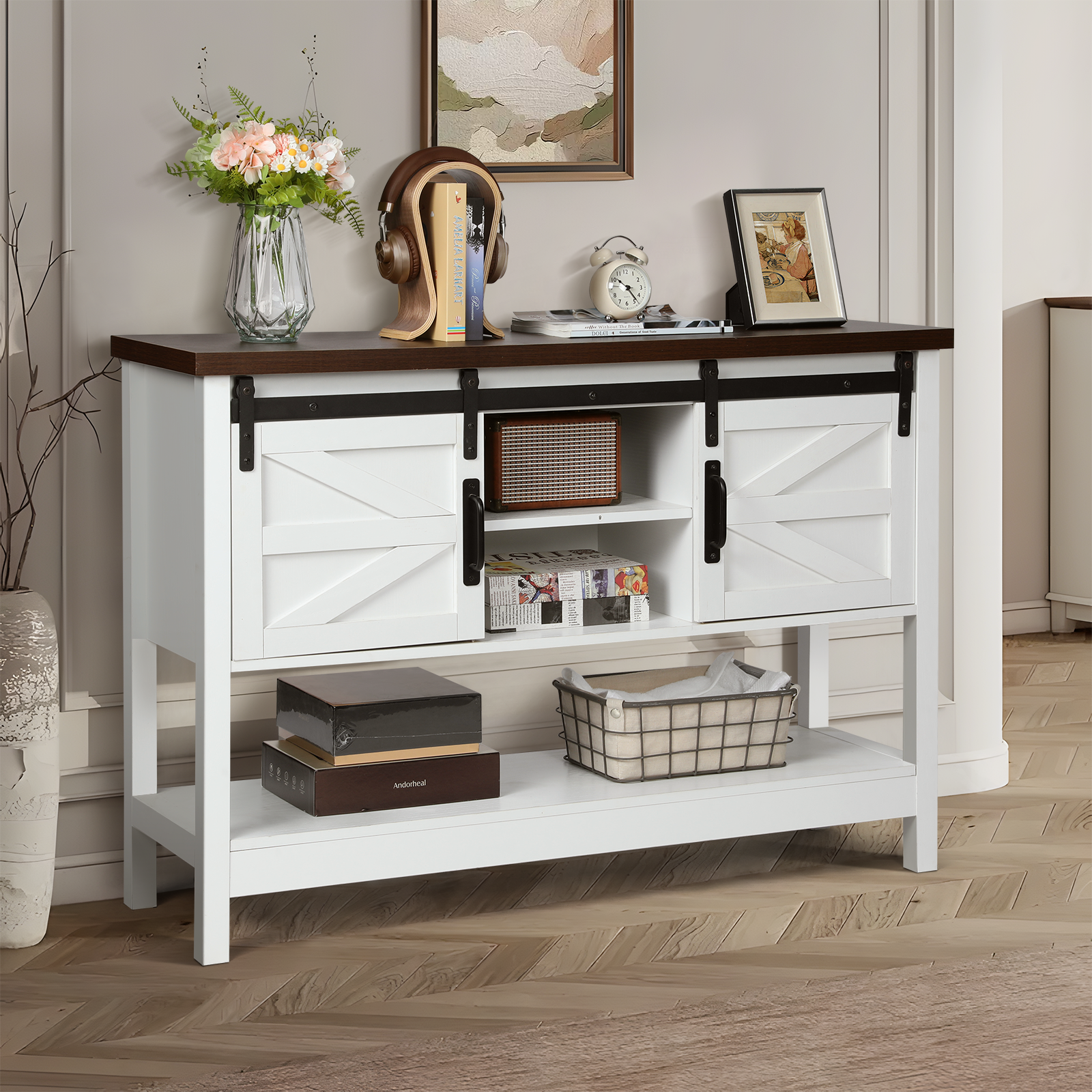 Slevoo 46" Farmhouse Console Table, Entryway Table with Sliding Barn Door and Adjustable Shelf White