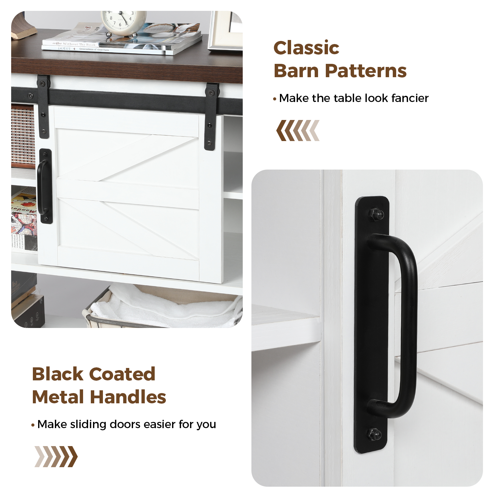 - 【2 Sliding Barn Doors】This console sofa table comes with 2 sliding barn doors, which minimizes the need for extra space to open like traditional hinged doors, convenient sliding and space-saving. You can slide the doors to either side to hide a cabinet or an open cubby in the middle.