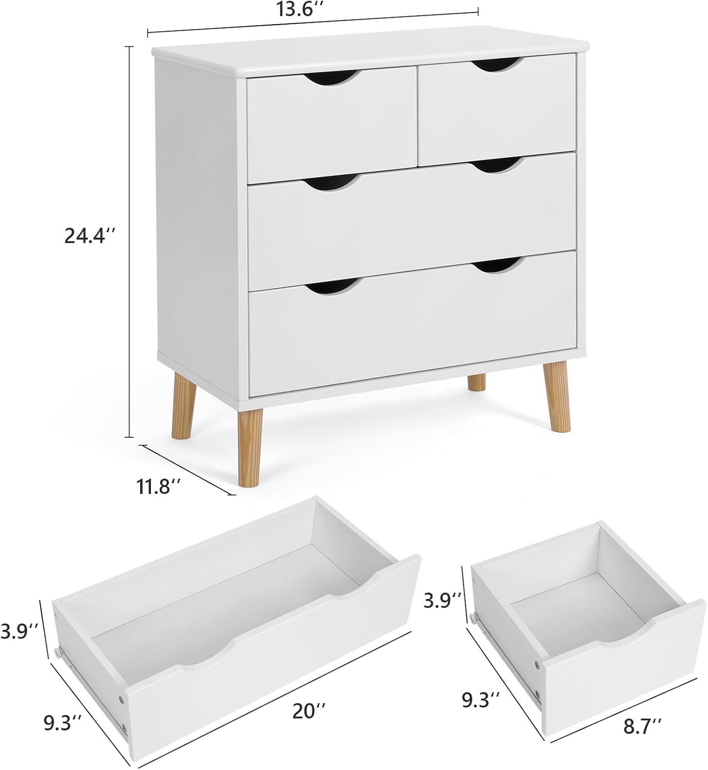 Slevoo 4 Drawers Dresser for Bedroom, 24.4''H White Drawer Dresser Nightstand with Solid Wood Legs
