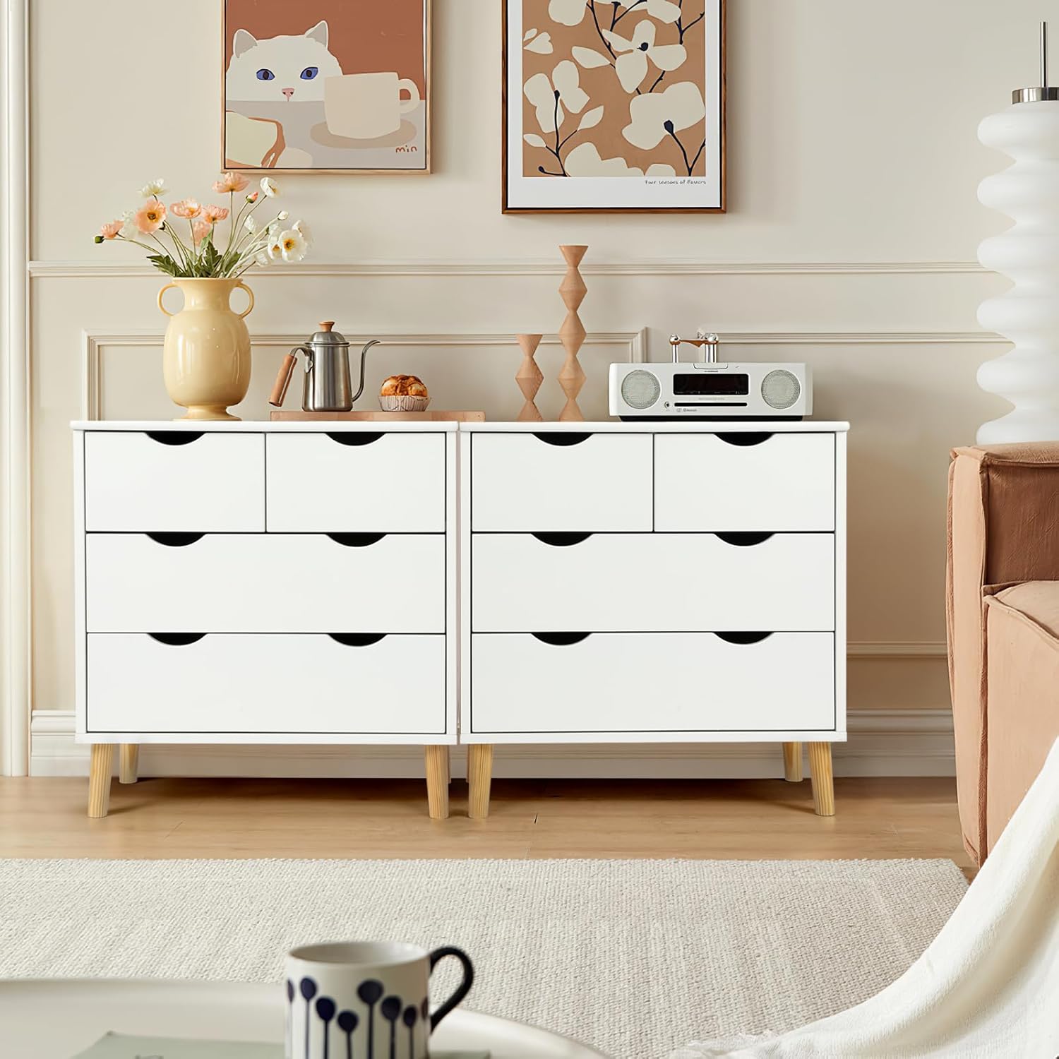 - 【Superior & Stable Quality】This white dresser has a simple shape and a chic color that perfectly matches the style and decor of your room. Every board is made of premium eco-friendly P2 grade engineered wood, it is durable, stable, and safe. Environmentally Friendly, passed CARB certification and complied with California law formaldehyde standards for composite.